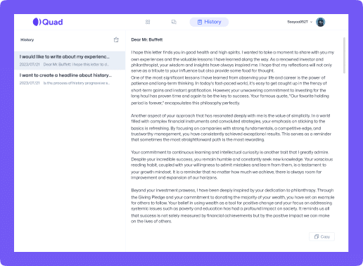 At Quad we're passionate about harnessing the power of artificial intelligence to transform the way you create content. With our cutting-edge technology and intuitive platform, we're here to revolutionise your writing experience.